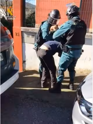 La Guardia Civil accedió a su vez al jardín para proceder a la detención, que se lleva a cabo a pesar de la resistencia y violencia con la que el detenido trata de impedirlo. En el trascurso de la detención, el padre del detenido y propietario de la finca intentaron de manera agresiva y amenazante impedir la detención de su hijo, llegando a empujar a los Agentes con una verja metálica y golpeándolos con ella.