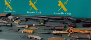 Tras acceder de forma voluntaria a la entrada y registro de su domicilio, fueron intervenidas en diversos lugares de la vivienda y desván las siguientes armas, así como diversa munición: dos escopetas de aire comprimido; dos pistolas de aire comprimido; una pistola traumática; tres machetes; doce cuchillos de monte y dos navajas.