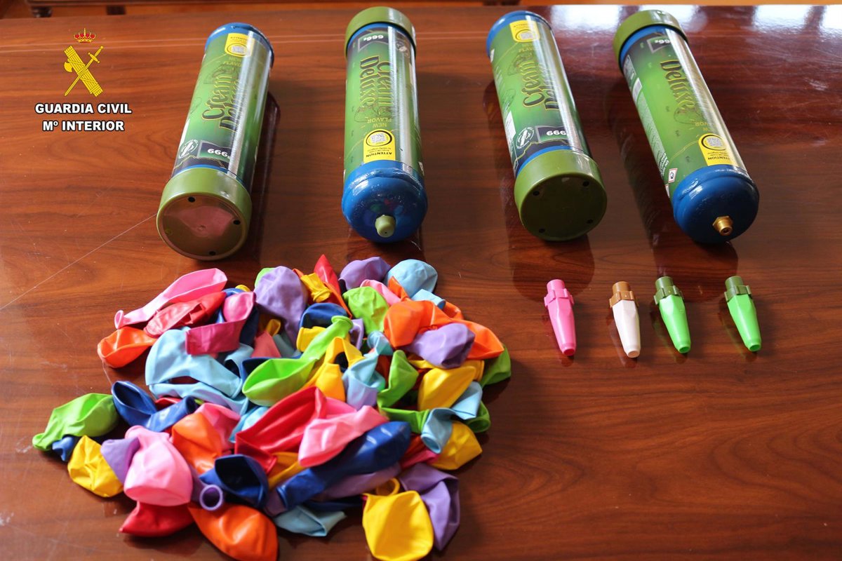 Al inspeccionar el maletero del vehículo, los agentes localizaron dos bolsas de plástico que contenían un total de cuatro botellas de óxido nitroso, con un peso neto de 666 gramos cada una, así como cuatro boquillas y una bolsa con 82 globos de colores. En el registro de las pertenencias personales, los menores portaban también varios globos en sus bolsillos. Según indicaron, todo el material había sido adquirido en una plataforma de venta online.