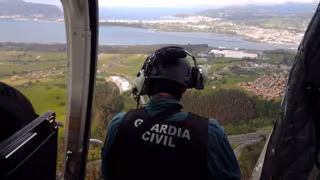 El helicóptero, con base en Asturias, se está desplazando semanalmente a la región para ayudar en la vigilancia que los agentes de la Guardia Civil realizan en tierra.