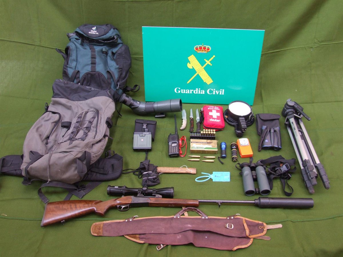 A sus dos acompañantes B.N.G. y A.D.S ambos de 32 años y vecinos de Laviana se les incautó elementos ópticos de gran calidad: un teleobjetivo, unos prismáticos y un telémetro así como navajas y un hacha para el despiece de animales.