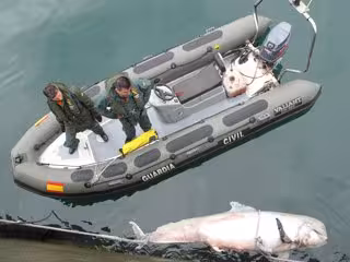 Los agentes, avistaron un animal muerto flotando a pocos metros de la embarcación. Usando la lancha neumática que posee la embarcación los guardias civiles sujetaron el cetáceo con un cabo, remolcándolo hasta el muelle del Rendiello del Musel, donde fue puesto a las 16:00 a disposición del Cepesma, los cuales lo trasladaran a el parque de la vida, de Luarca, donde determinaran las causas del fallecimiento del animal tras realizarle la necropsia.