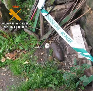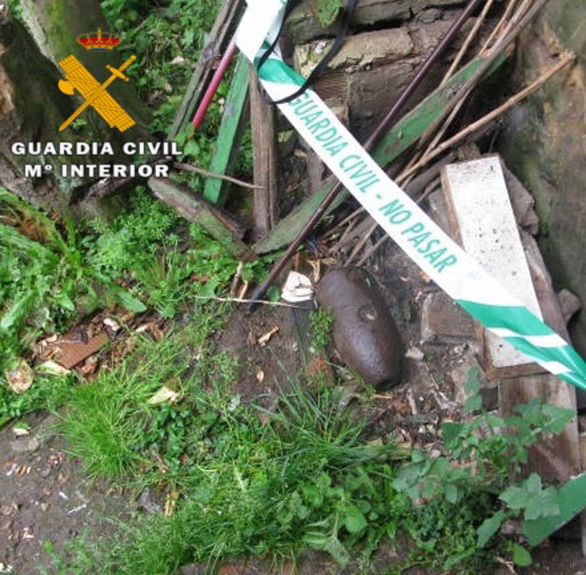La Guardia Civil de Oviedo ha procedido a la recuperación y destrucción de la cabeza de un obús en Berció, Grado, tras la llamada de un vecino que alertaba del hallazgo.