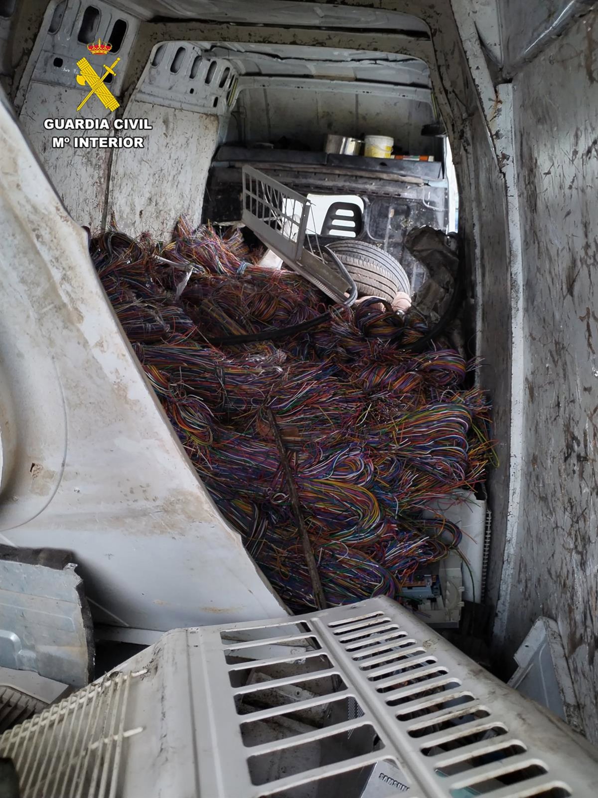 Con estos antecedentes previos, los agentes decidieron realizar una inspección del interior de la furgoneta, ratificando las sospechas de los agentes, que encontraron el cable de cobre escondido bajo placas de chatarra para dificultar su localización a primera vista.