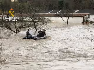 Efectivos del Grupo Especial de Actividades Subacuáticas (GEAS) de la Guardia Civil de Asturias han ayudado este jueves a un vecino de Candamo a trasladarse en lancha hasta su granja, que quedó aislada por el temporal, para poder alimentar a sus animales.
