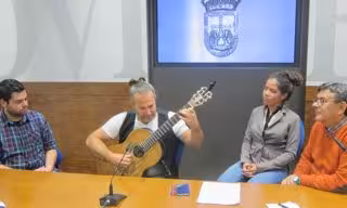 En la sala de prensa del Ayuntamiento, el guitarrista que lleva afincado 10 años en España, ha ofrecido una pequeña muestar de su repertorio con el que ya lleva realizados "más de dos mil bolos" conjugando "la música clásica con la popular".