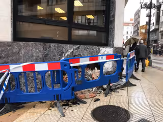 Desde la calle Argüelles venía la conductora herida leve, cuyo coche recibió un golpe en la puerta trasera izquierda y terminó impactando frontalmente contra el edificio.