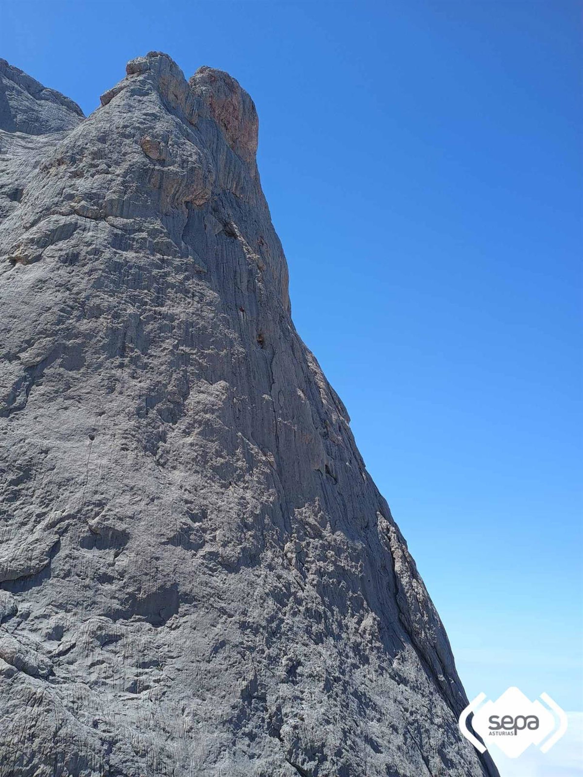Efectivos del Grupo de Rescate de Bomberos de Asturias, a bordo del helicóptero medicalizado del Servicio de Emergencias del Principado de Asturias (SEPA), han rescatado a un escalador vallisoletano de 29 años que sufrió una caída mientras estaba escalando el quinto largo de la cara este del Picu Urriellu, Picos de Europa (Cabrales).
