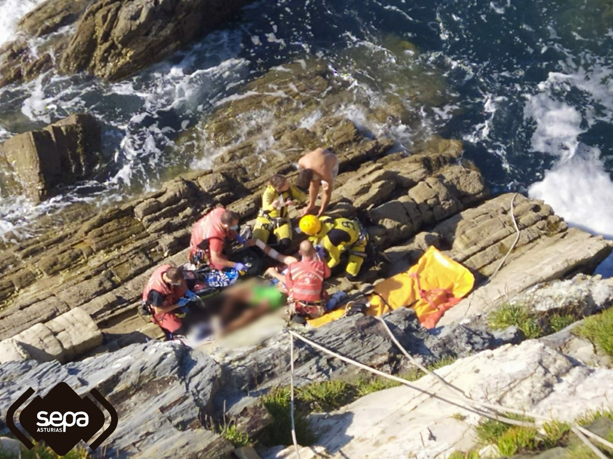 El Grupo de Rescate del Servicio de Emergencias del Principado de Asturias (SEPA), han rescatado este domingo a un hombre tras caer de una altura de entre 15 y 20 metros en el acantilado de Cabo Blanco, en El Franco.