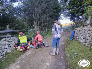 Efectivos del Grupo de Rescate de Bomberos de Asturias, a bordo del helicóptero medicalizado del Servicio de Emergencias del Principado de Asturias (SEPA), ha evacuado a un motorista belga que ha resultado herido tras sufrir una caída con la moto entre el Cordal de Conforcos y Lomas de Cuaña, en Santibanes de Murias, Aller.