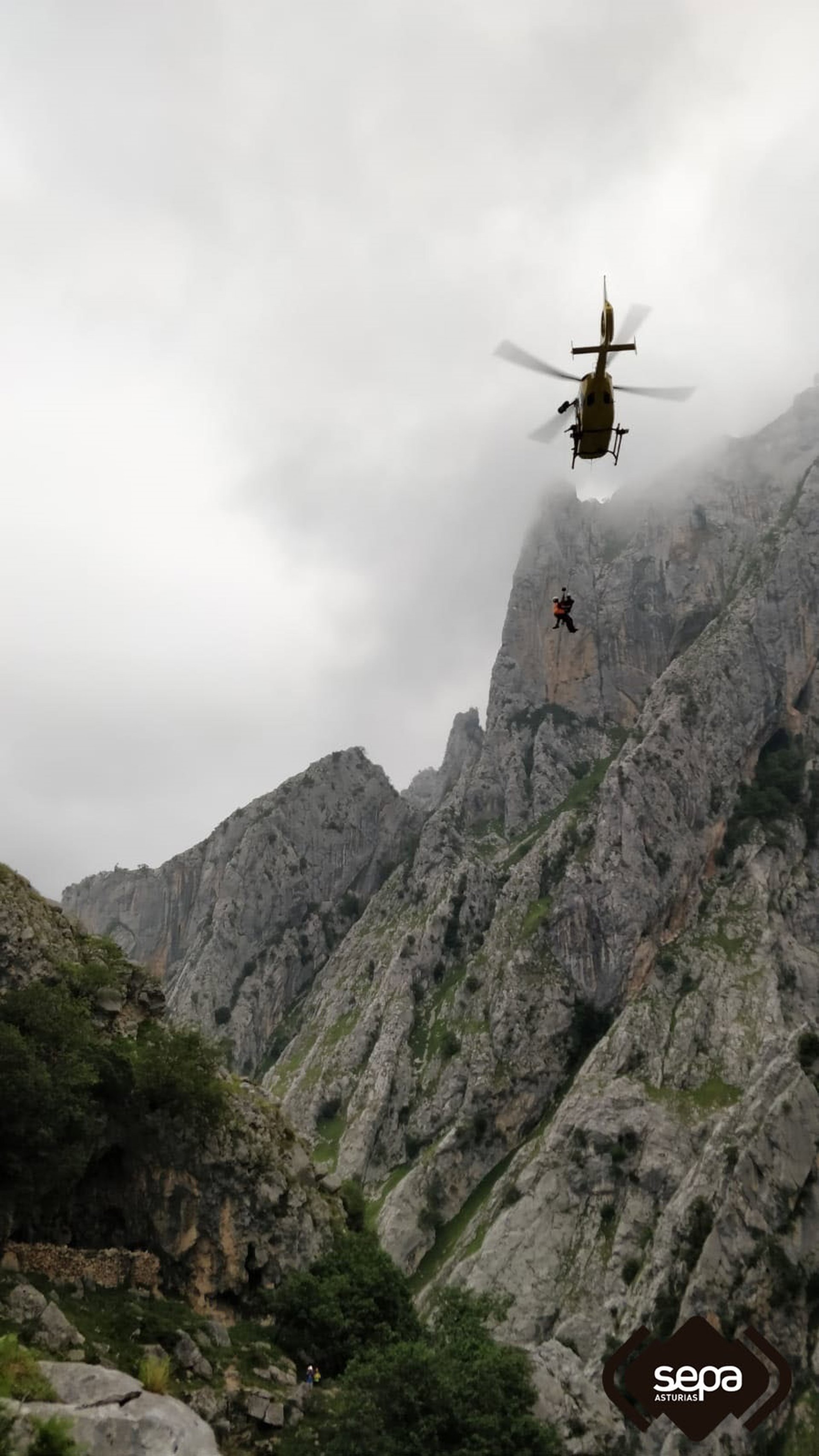 Una vez en la zona, el piloto realizó una operación de apoyo de patín y el médico-rescatador y un bombero-rescatador descendieron del helicóptero. Tras atender al varón herido, se procedió a su evacuación. Para ello se ejecutaron dos operaciones de grúa, una para el médico-rescatador y el senderista, y otro para el bombero-rescatador. Una vez en la aeronave, se procedió al traslado al Hospital Comarcal de Arriondas.