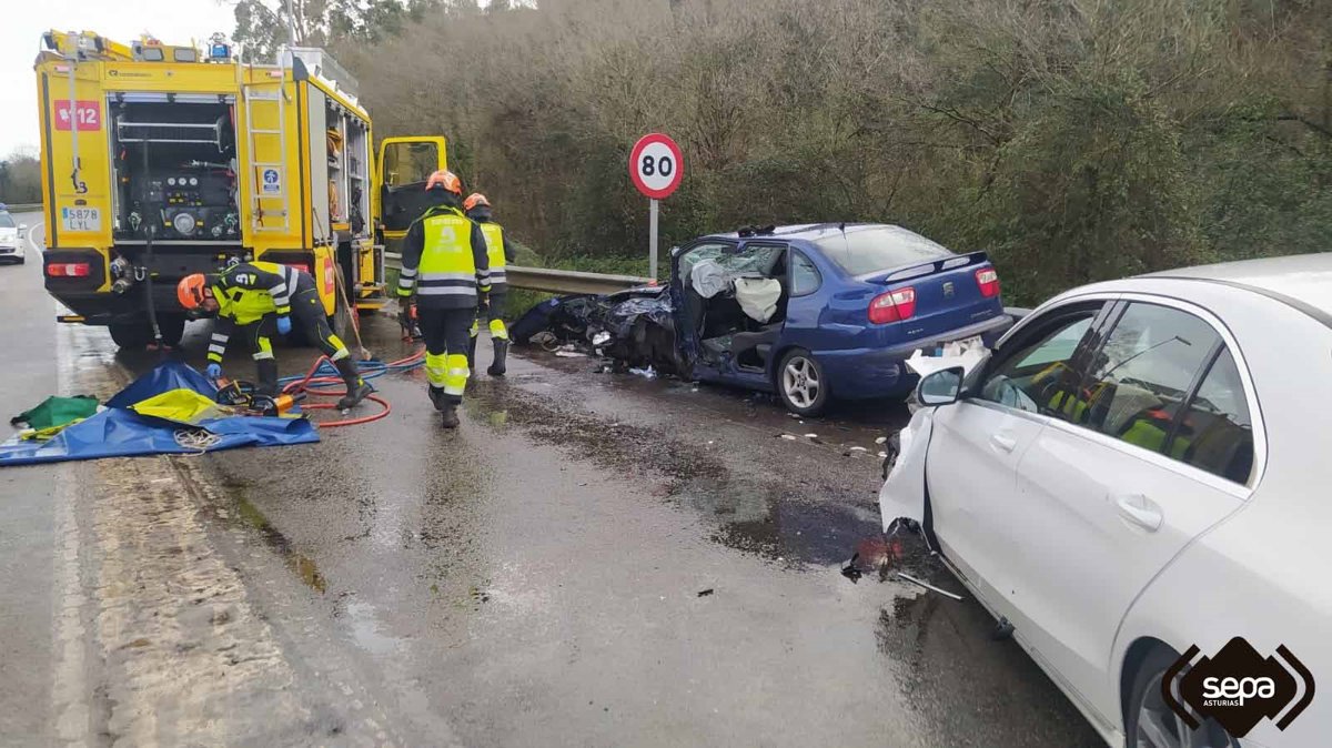 Tres varones han resultado heridos en un accidente de tráfico entre dos turismos en la AS-238, a la entrada de Luanco, en Gozón. Según los datos facilitados por el Servicio de Atención Médica Urgente (SAMU) los tres han sido trasladados al Hospital San Agustín.