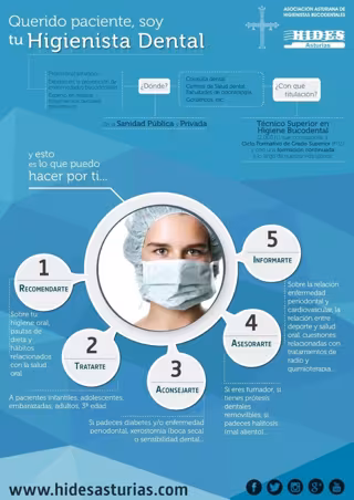 Hides Asturias, a través de cursos y seminarios, apuesta por una formación específica y adecuada, que atienda las demandas y exigencias actuales, a través de una atención personalizada. El colectivo asturiano está llevando actualmente a cabo una campaña en la que, bajo el título 'Querido paciente, soy tu Higienista Dental', informa a la población sobre la figura del Higienista Bucodental.