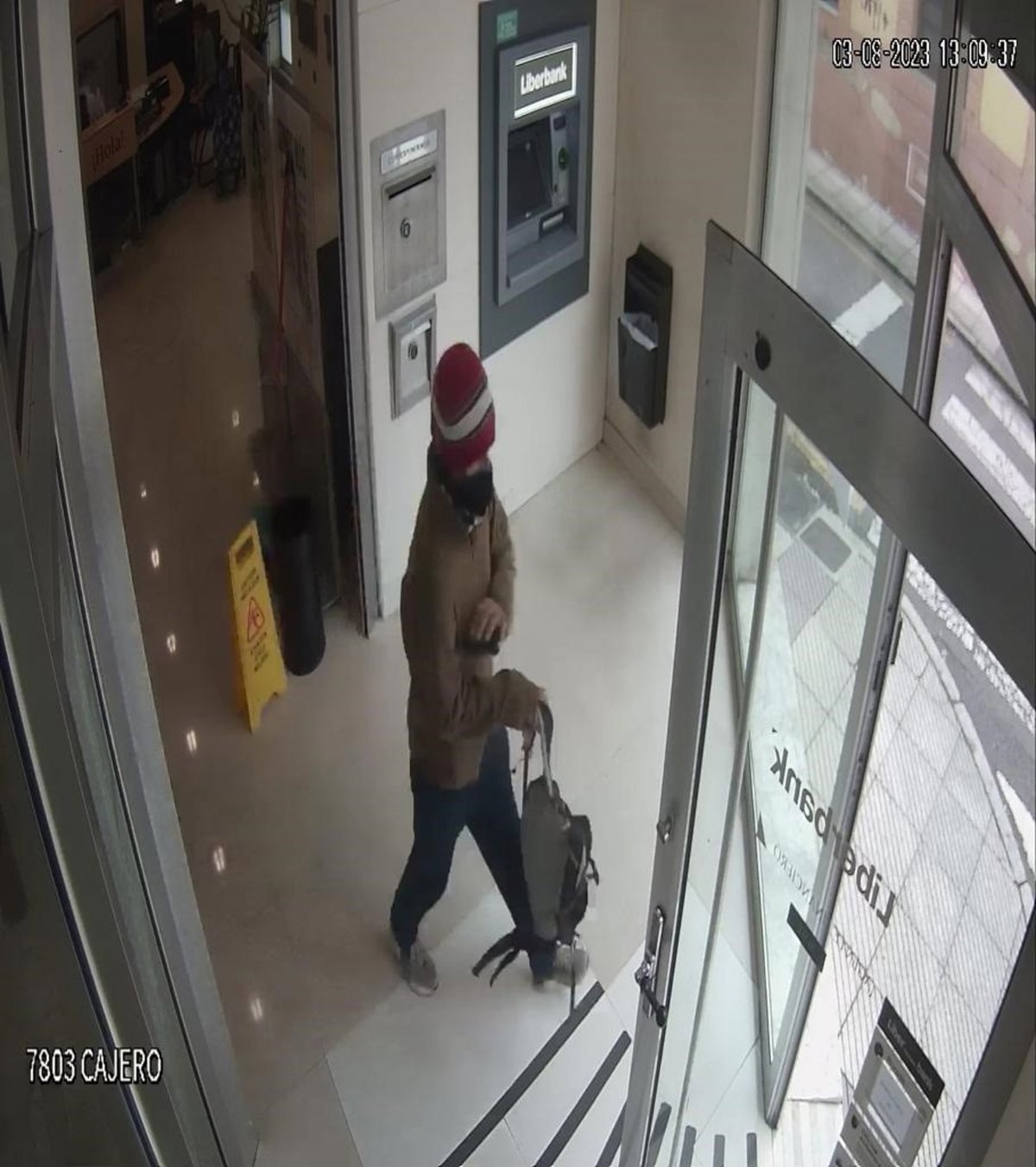 Cuando los agentes comenzaron a investigar lo sucedido, la descripción física obtenida del visionado de las cámaras de la entidad bancaria y de los testigos presenciales (un trabajador, una clienta, y otra trabajadora de la entidad que se hallaba en los exteriores), arrojó un perfil de un hombre, de edad comprendida entre 35-40 años, de complexión delgada, estatura media, que ocultaba su cabeza con un gorro de lana y su cara con una braga y una mascarilla.