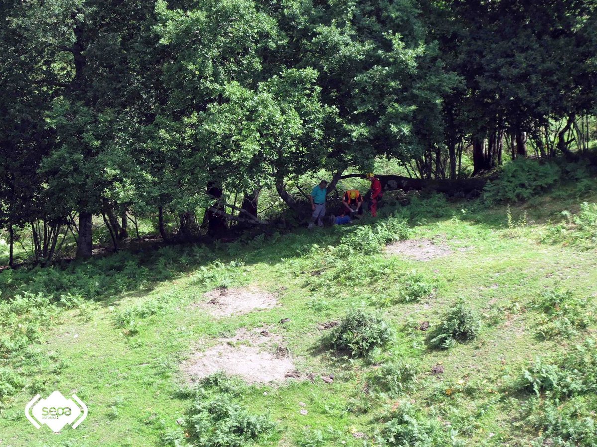 El Grupo de Rescate de Bomberos del SEPA ha trasladado en helicóptero al Hospital del Oriente, en Arriondas, a un joven de 21 años que presentaba dolor torácico y dificultades respiratorias cuando estaba en el monte, en la zona de Entrepeñas, en Piloña.