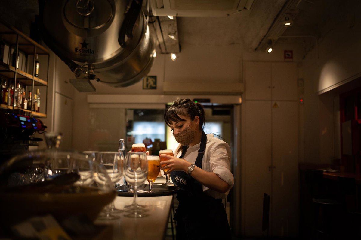 Archivo - Una camarera sirve una cerveza en el interior de un bar - David Zorrakino - Europa Press - Archivo