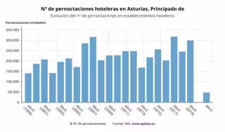 Evolución del número de pernoctaciones en establecimientos hoteleros en Asturias hasta abril del 2021. - EPDATA