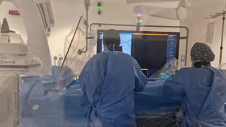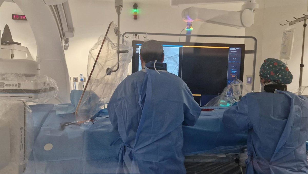 Para abordar este problema, el HUCA ha diseñado un protocolo que implica a profesionales de Neurocirugía y Neurorradiología Intervencionista y que combina la intervención quirúrgica con la embolización de la arteria meníngea media, un procedimiento mínimamente invasivo que ocluye pequeños vasos implicados en la inflamación que favorece la persistencia del hematoma. La técnica se realiza mediante cateterismo radial y bajo sedación consciente, sin prolongar la estancia hospitalaria.