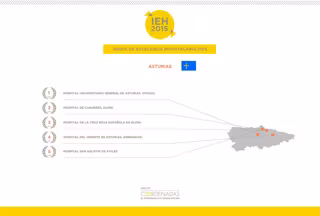 El IEH 2015 se estructura en torno a tres ejes: IEH General -los 10 mejores centros a nivel nacional-, IEH autonómico -los mejores cinco centros de cada comunidad autónoma- e IEH por especialidades -los mejores cinco centros según especialidad-. Esta segunda tanda de la presentación corresponde al IEH Autonómico 2015, que toma como muestra el conjunto grandes hospitales públicos y privados a nivel autonómico.