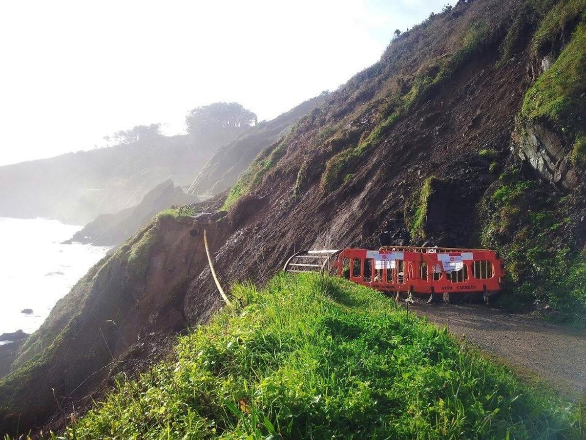 Una parte de la ladera del acantilado que atraviesa la senda de El Tranqueru, y que bordea la playa del mismo nombre, se vino abajo provocando un "argayu inmenso", según han explicado las mismas fuentes.