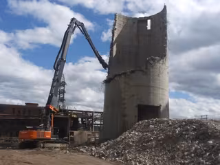Una vez alcanzados los treinta metros de altura, se ha procedido a la eliminación de los andamios y a picar la chimenea desde el suelo. En tan sólo una semana se ha finalizado estas labores y ya no hay resto alguno.