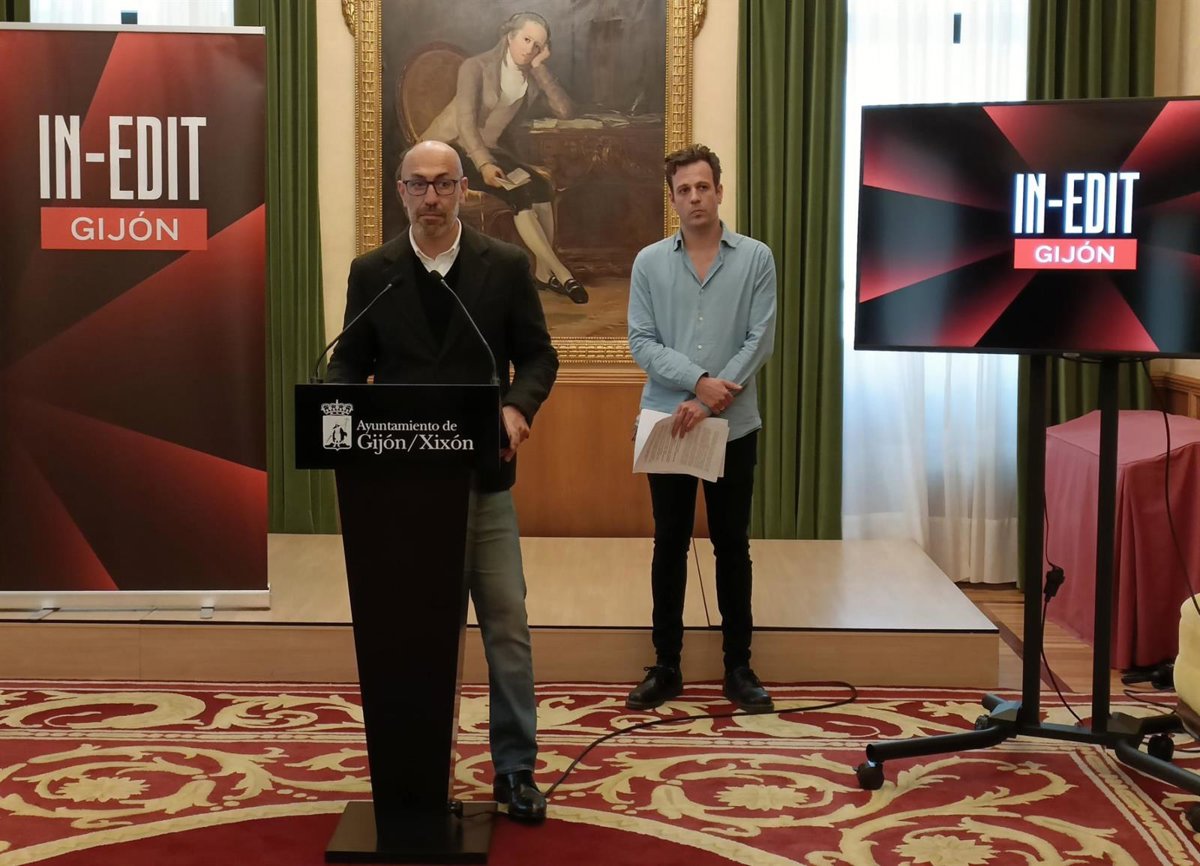 Rueda de prensa en el Ayuntamiento gijonés, del presidente de Divertia Gijón, Óliver Suárez, y el responsable de prensa del festival In-Edit Gijón, Esteban Girón. - EUROPA PRESS