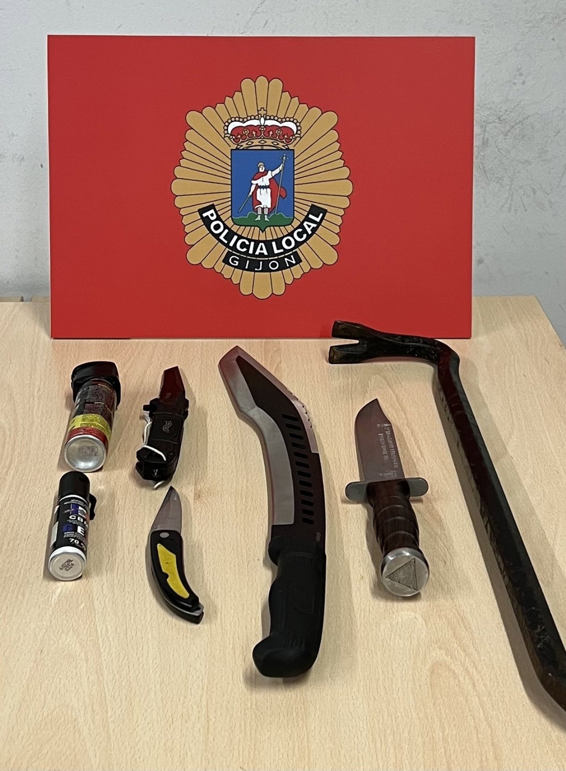 Agentes de la Policía Local de Gijón han incautado es varias armas al conductor de una motocicleta, según una nota de prensa del Ayuntamiento gijonés.