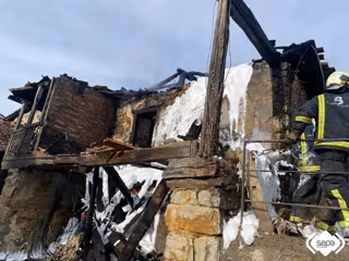 Efectivos de Bomberos del Servicio de Emergencias del Principado de Asturias (SEPA) con base en el parque de Mieres y La Morgal han extinguido el incendio declarado en una casa en Palaciós, Lena. El fuego calcinó el inmueble de dos plantas. El Centro de Coordinación de Emergencias recibió el aviso a las 8:34 horas.