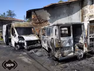 Efectivos de Bomberos del Servicio de Emergencias del Principado de Asturias (SEPA), con base en el parque de Llanes, han sofocado el incendio de dos furgonetas en San Miguel de Ucio, en Ribadesella. El fuego calcinó ambos vehículos y afectó al tejado de un inmueble en el que se guardaban aperos agrícolas.