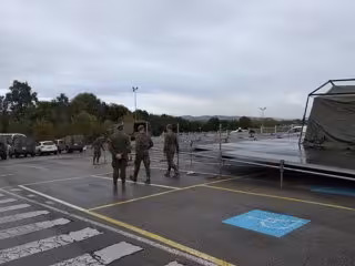 Montaje de un hospital de campaña junto al centro hospitalario de Cabueñes, en Gijón - EUROPA PRESS