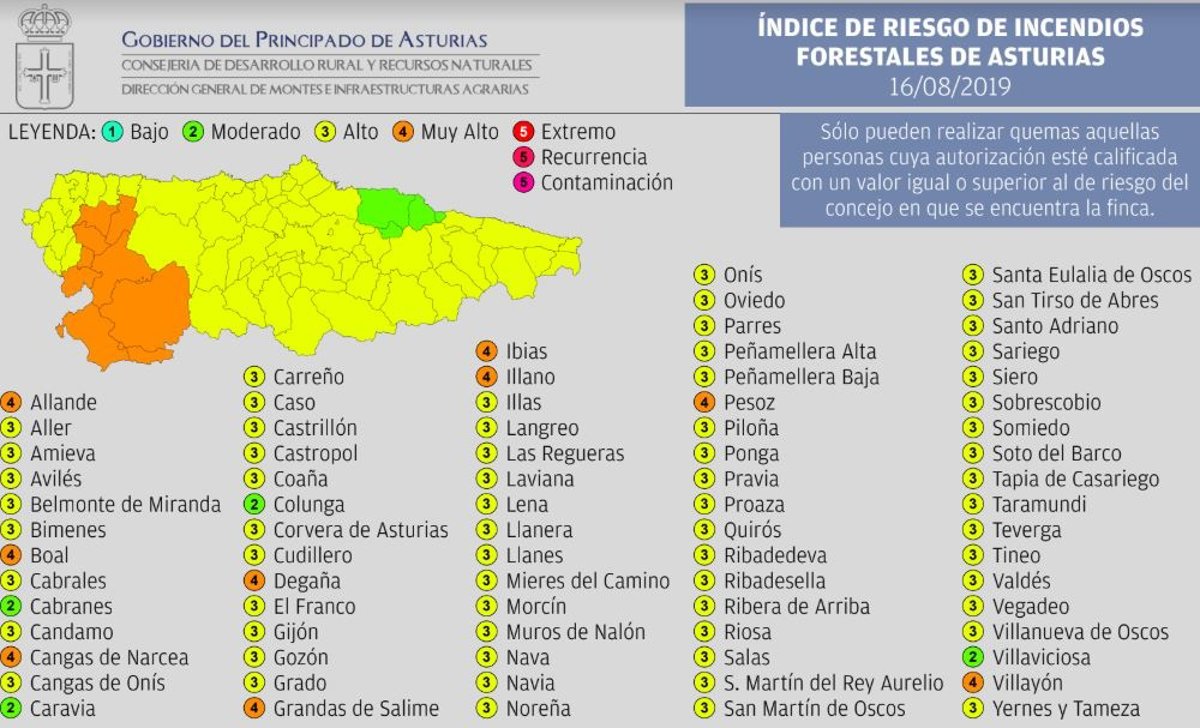 Índice De Riesgo De Incendio Forestal En Asturias Para Este Viernes 16 De Agosto De 2019. - INDUROT