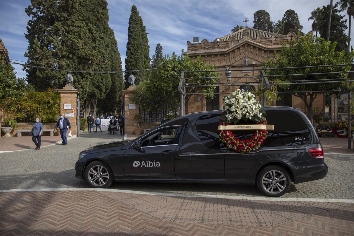 Un coche fúnebre aparcado en las inmediaciones del Cementerio de San Fernando, en Sevilla, Andalucía (España). - María José López - Europa Press