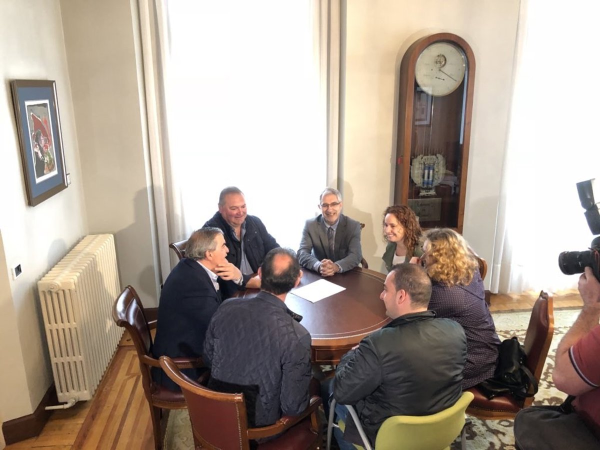 Llamazares y el coordinador de IU, Ramón Argüelles, se han reunido este lunes con el alcalde de Mieres, Anibal Vázquez, y los portavoces de los grupos municipales en el Ayuntamiento para abordar la implantación del grado de Deporte en el campus de la localidad.
