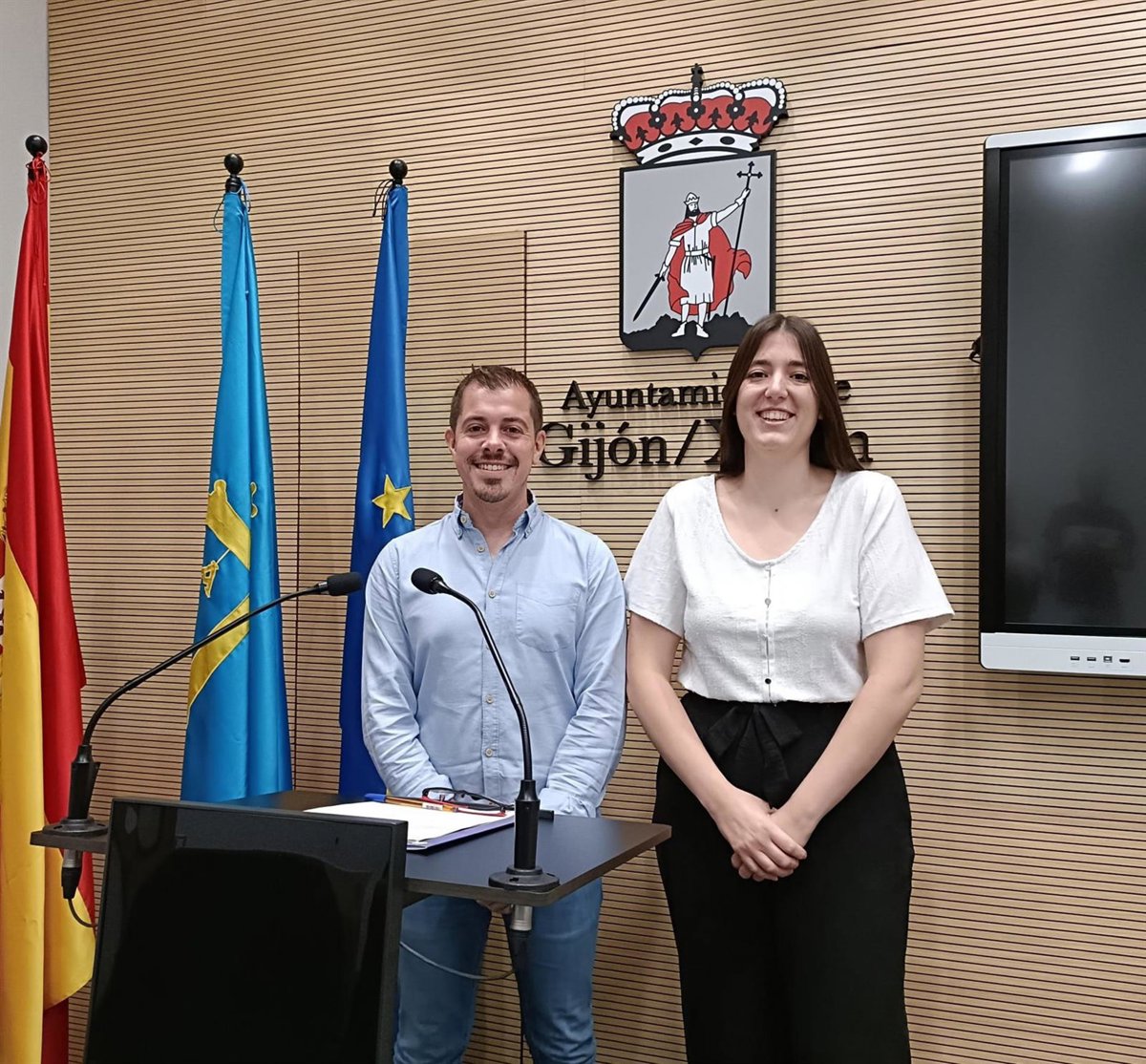 Archivo - Los portavoces de IU y de Podemos en el Ayuntamiento de Gijón, Javier Suárez Llana y Olaya Suárez. - EUROPA PRESS - Archivo