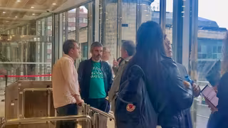 Ovidio zapico habla con los representantes sindicales minutos después de que estos se levantasen de la mesa de negociación. - EUROPA PRESS