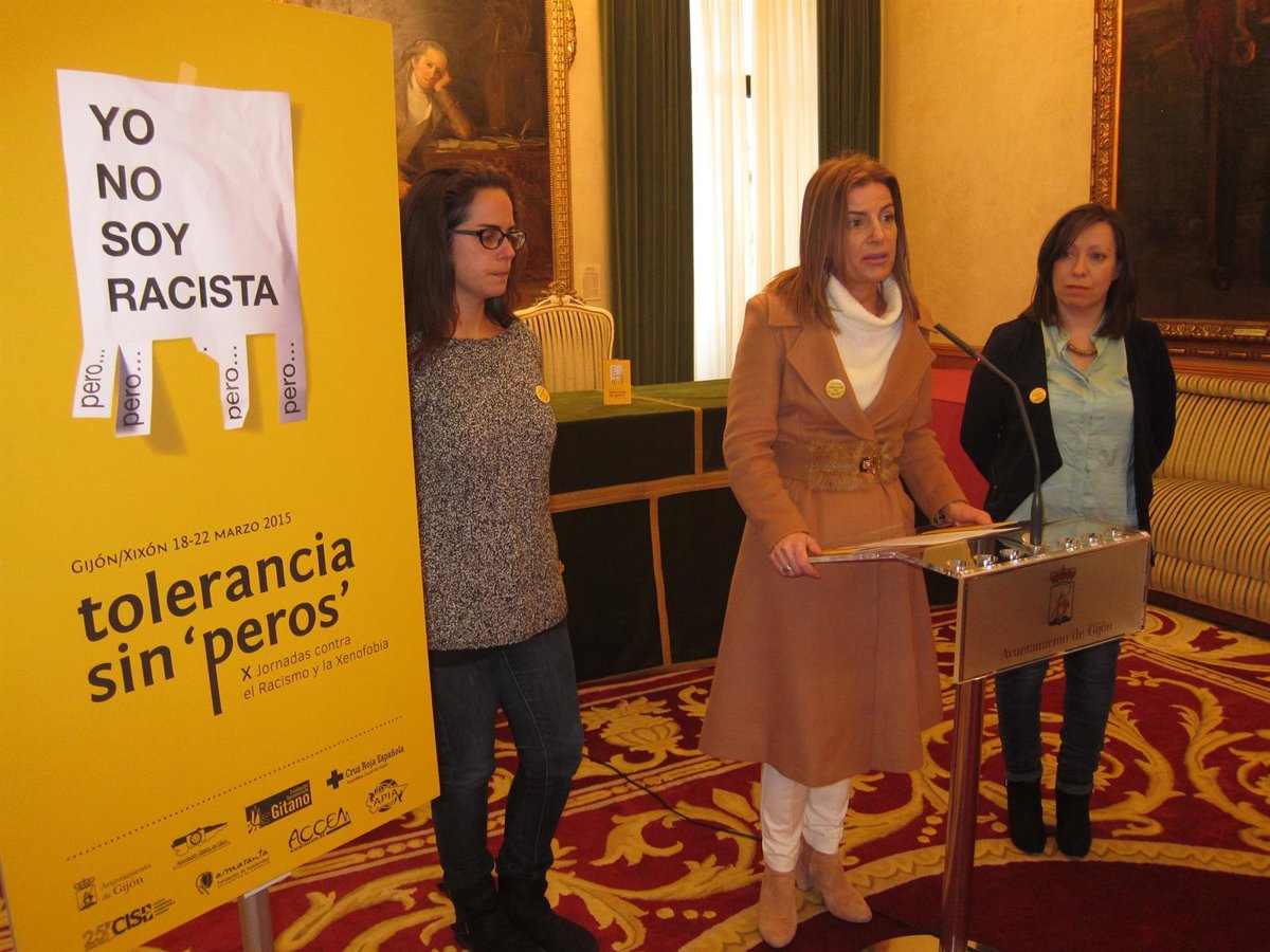 Bajo el lema 'Tolerancia sin 'peros', no faltará en estas jornadas una cadena humana, el día 20, que irá de la Escalerona de la Playa de San Lorenzo hasta la Plaza Mayor. El evento ha sido presentado este lunes en el Ayuntamiento por la concejala de Bienestar Social, Eva Illán, así como por dos representantes de organizaciones participantes en las jornadas.