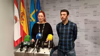 Juan Miguel Chaves Martínez, junto a la ex edil de Xixón Sí Puede Eestefanía Puente, durante una rueda de prensa en el Ayuntamiento de Gijón en 2019 - EUROPA PRESS - Archivo