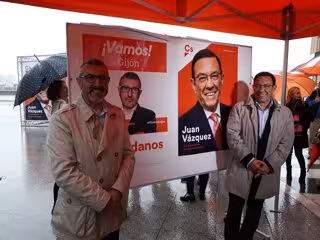 "Venimos a ofrecer ideas para mejorar Asturias", ha apuntado Vázquez durante la presentación del cartel electoral, arropado por los miembros de su candidatura, el cabeza de lista a la Alcaldía de Gijón, José Carlos Fernández Sarasola, y otros dirigentes y militantes del partido naranja, como el recién elegido diputado nacional por Asturias, Ignacio Prendes.