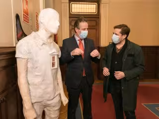 Marcelino Marcos Líndez elogió la muestra expositiva del "excelente y consolidado" artista Federico Granell, titulada 'Para Iluminar el Bosque'. Se trata de un mural políptico y otros seis cuadros y tres esculturas figurativas, que se exponen en el salón Europa y en la escalera central de acceso a la planta noble del Palacio de la Junta.