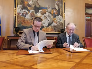 El presidente de la Junta General del Principado, Marcelino Marcos Líndez, y el presidente de la Academia Asturiana de Jurisprudencia, Leopoldo Tolivar Alas han rubricado este miércoles el convenio de colaboración que prorroga el que ya existía pero mejorándolo.