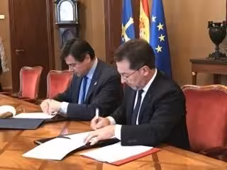 El Presidente de la Junta General del Principado, Pedro Sanjurjo, y el consejero de Educación y Cultura, Genaro Alonso, en nombre del Principado de Asturias, han suscrito este viernes un convenio de colaboración que tiene como fin la organización de una Liga de Debates dirigida al alumnado de Educación Secundaria. El Parlamento asumirá la financiación del programa con una aportación anual de 14.000 euros.
