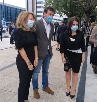 Lastra ha acudido al acto homenaje a las víctimas de la pandemia en la región que se ha celebrado en las inmediaciones del Hospital Central Universitario de Asturias.
