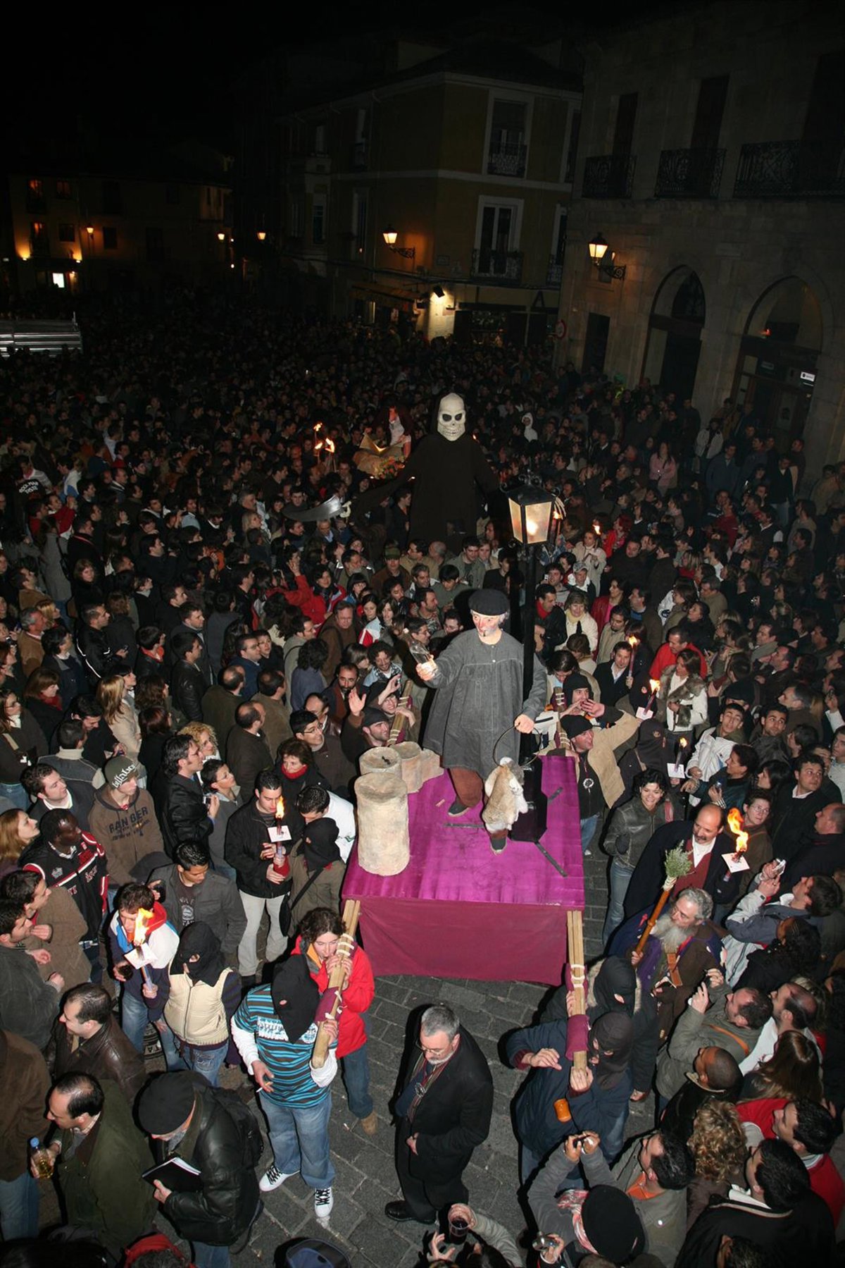Se trata de una arraigada, y polémica, costumbre que cada año reúne a miles de leoneses y visitantes, pese a que no es un acto oficial recogido en el programa de celebraciones de la Pasión leonesa. La cita fue prohibida en 1957, pero se recuperó en los años 70 para recordar la parodia de las procesiones que iniciaron en su momento los 'cuatro apóstoles' de Genero Blanco, Francisco Pérez, Eulogio 'el gafas', Nicolás Pérez y Luis Rico.