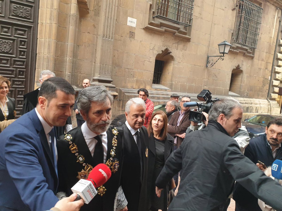 El presidente del Tribunal Supremo y del Consejo General del Poder Judicial también aprovechó para resaltar la trayectoria profesional y personal de Chamorro, marcada por "el rigor y la coherencia" ante la presencia del presidente del Principado de Asturias, Adrián Barbón, representantes de las institucionales asturianas y dirigentes políticos, así como miembros del Consejo General Poder Judicial y los presidentes de los Tribunales Superiores de Justicia de Galicia, Castilla y León, Cantabria y La Rioja.