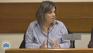 La vicepresidente del Principado, Gimena Llamedo, durante la comisión parlamentario de esta tarde en la JGPA. - CAPTURA JGPA