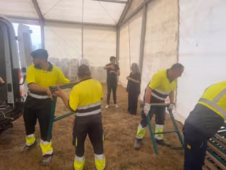 El operativo ha contado con la implicación directa de operarios municipales. Esta mañana, la alcaldesa en funciones, Eva María Pérez, acompañada por el portavoz socialista y concejal de Deportes, José Antonio González, y el concejal de Juventud, Nicolás Fernández, visitaron el prao de las fiestas de Lugo de Llanera para ultimar los detalles de los elementos aportados por el Ayuntamiento y supervisar el desarrollo de los trabajos previos.