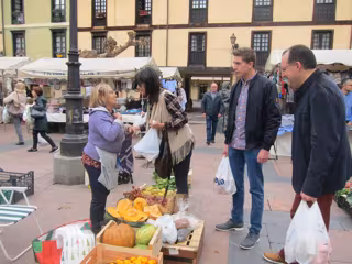Junto a su marido y su sobrino ha paseado por el mercado ovetense de El Fontán y ha aprovechado para hacer la compra, centrándose en productos frescos, especialmente fruta y verdura.