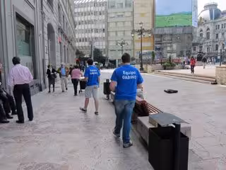 Los repartidores llevan camisetas azules y en la espalda se puede leer 'Equipo Gabino'. El díptico está encabezado por un primer plano de Gabino de Lorenzo y la frase: 'En Oviedo, Gabino'. En el interior del mismo, el alcalde de Oviedo pide el apoyo a los ovetenses. "Apóyame para que Oviedo siga avanzando y continúe siendo la capital activa y dinámica que Asturias necesita".