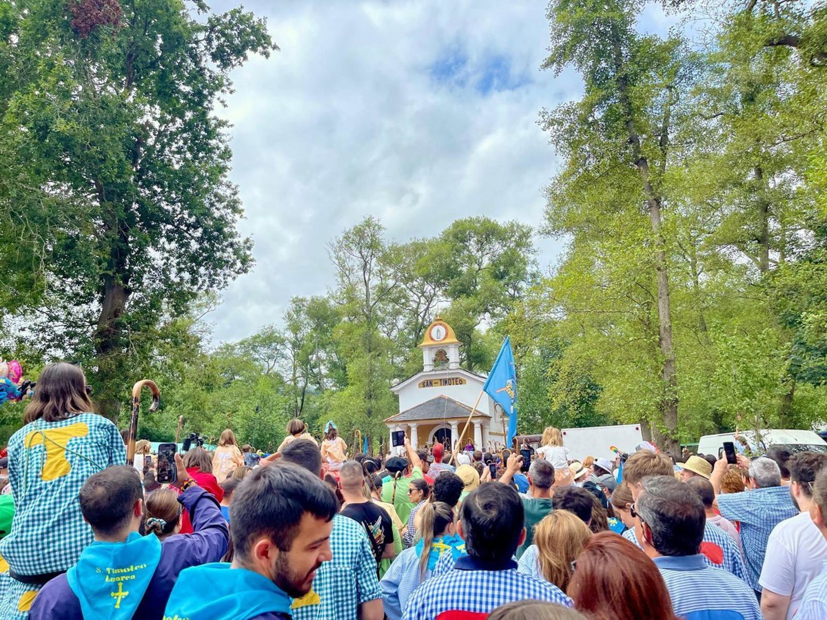 La ermita está en el llamado Campo de San Timoteo. Miles de romeros se congregan a sus puertas a la espera de la celebración de la misa. Posteriormente se saca el santo en procesión. Una vez de vuelta, se le recibe con el clásico 'cumpleaños felíz' con los romeros cantando todos juntos, bastón en alto.