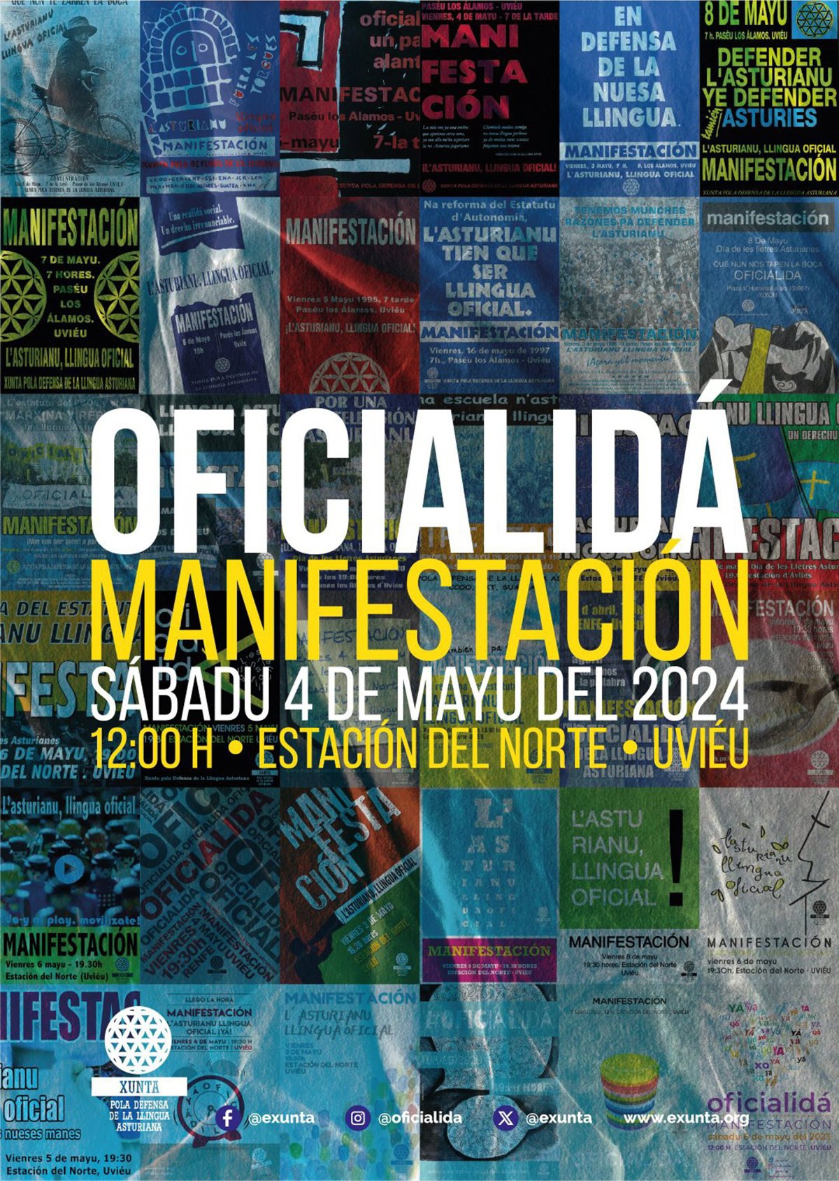 La Xunta pola Defensa de la Llingua Asturiana (XDLA) ha convocado la manifestación por la oficialidad del asturiano y del gallego-asturiano el próximo sábado 4 de mayo a las 12.00 horas en Oviedo, con salida de la Estación del Norte.
